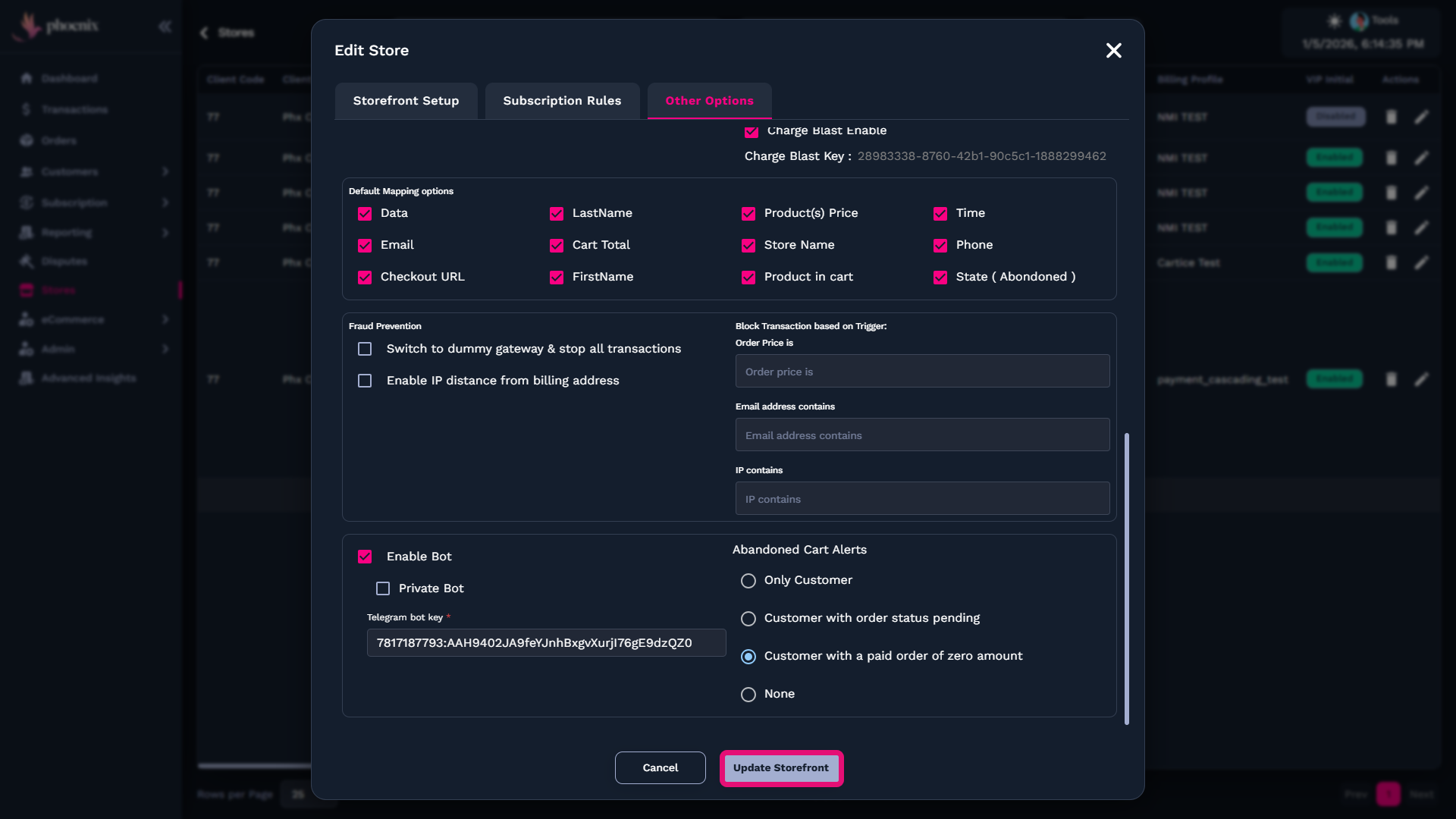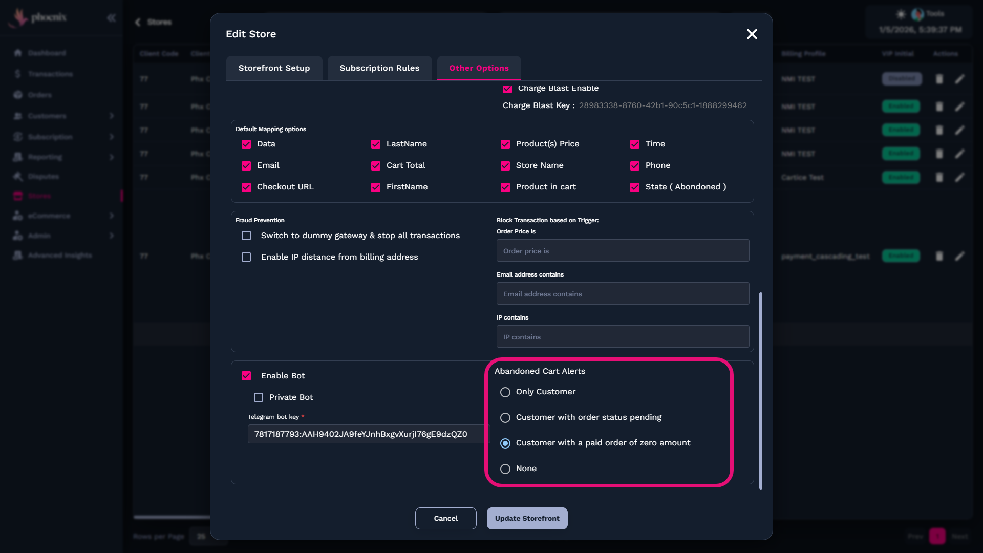 You can configure Phoenix to send abandoned cart information to your email and SMS providers. This setup allows you to trigger follow-up campaigns, recover potential sales, and track customer activity when a checkout is not completed.